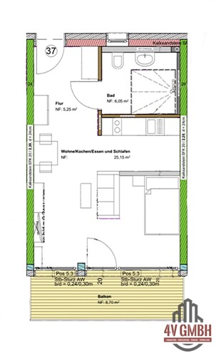 Wohnfläche 36 m²