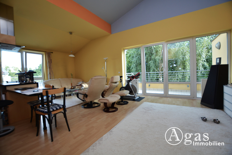 Die hier zum Kauf stehende Eigentumswohnung befindet sich im Dachgeschoss eines Mehrfamilienhauses mit 8 Parteien. Die stilvolle Wohnung verfügt über 3 Zimmer. Sie betreten die Wohnung durch einen großzügigen Flur, von dem aus Sie alle Zimmer direkt erreichen können. Rechter Hand befindet sich das große, durch seine bodentiefen Fenster lichtdurchflutete Wohnzimmer mit einer offenen Küche. Von diesem haben Sie sowohl Zutritt zu einem kleinen Balkon als auch zu der über die gesamte Breite der Wohnung gehenden gefliesten ca. 30 m² großen Dachterrasse. Linker Hand befinden sich das Kinder- oder Arbeitszimmer sowie das Schlafzimmer, welches ebenfalls Zutritt zu der großzügigen Terrasse bietet.