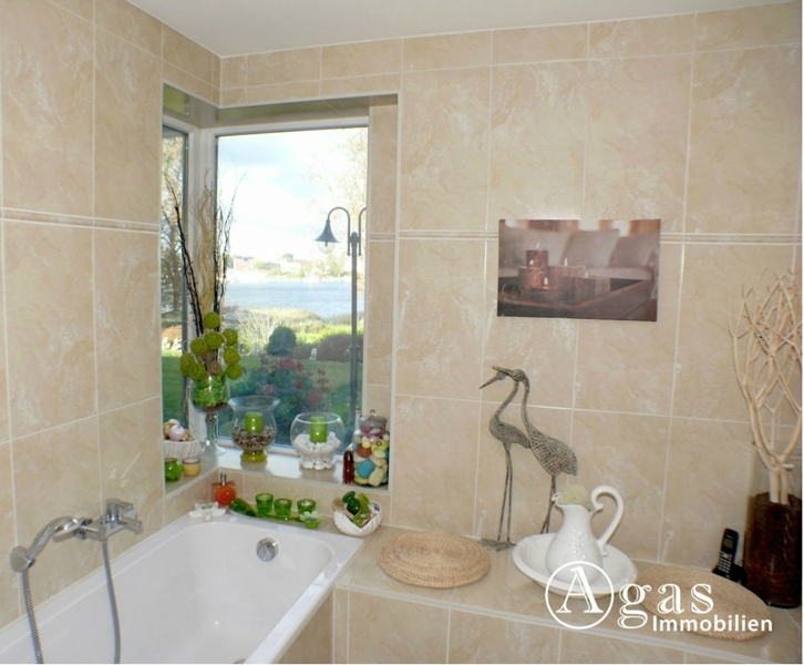 Im Erdgeschoss befinden sich des Weiteren ein Schlafzimmer mit daran anschließendem, von Oberlichtern lichtdurchfluteten Ankleidebereich mit hochwertigen Einbauschränken und direktem Zugang zum Bad mit Seeblick.