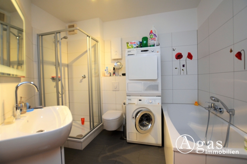 Die gesamte Wohnung ist mit hochwertigem Parkett ausgelegt und die helle Einbauküche mit hochwertigen Elektrogeräten ausgestattet. Im Badezimmer, welches mit dunklen Boden- und hellen Wandfliesen ausgestattet ist, finden Sie sowohl eine Badewanne, als auch eine Dusche. Auch bietet sich hier ein Stellplatz für Ihre Waschmaschine und ggf. Trockner.