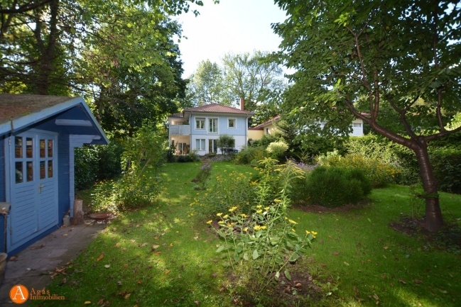 Das wunderschöne Grundstück befindet sich in einer sehr ruhigen Anliegerstraße in der Nähe des Boddensees und wird von dem kleinen Flüsschen Briese begrenzt. Zum liebevoll angelegten Garten gehört ein kleines Gerätehäuschen.