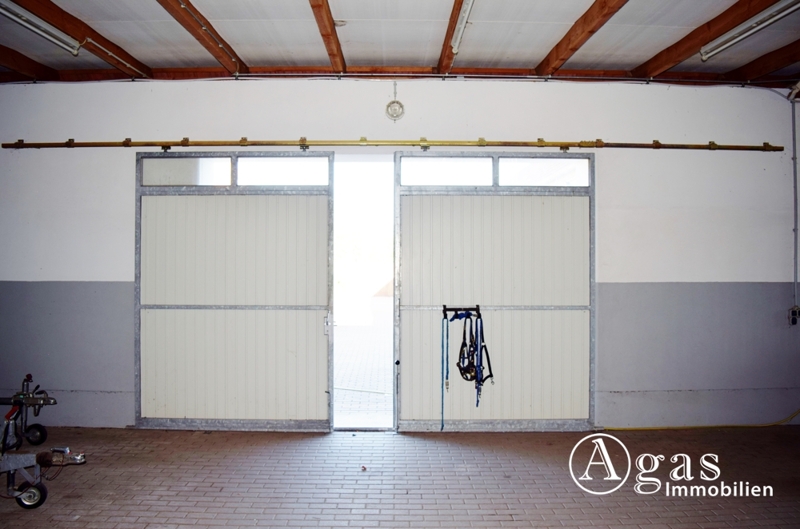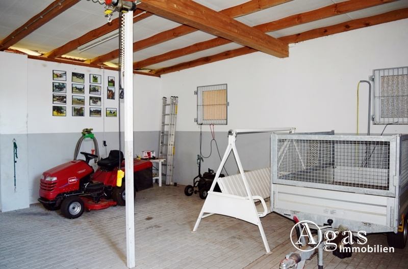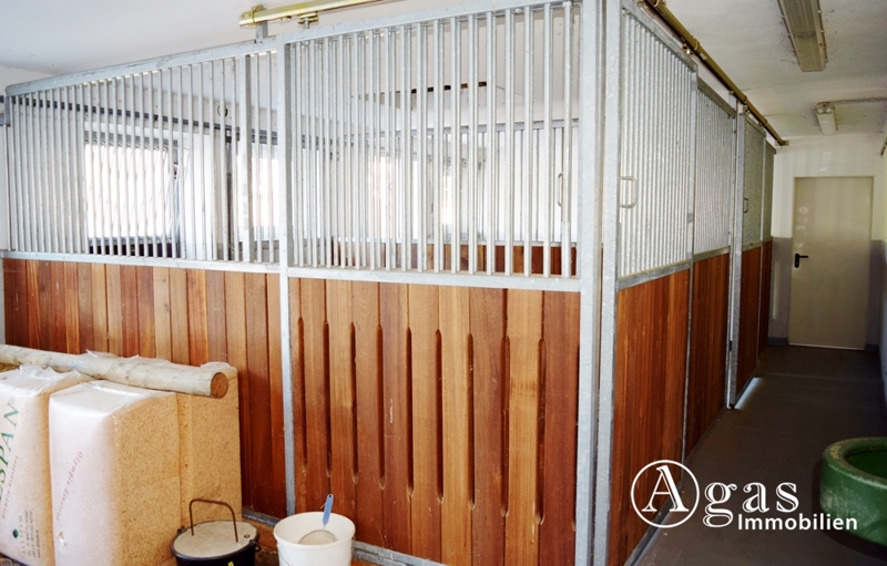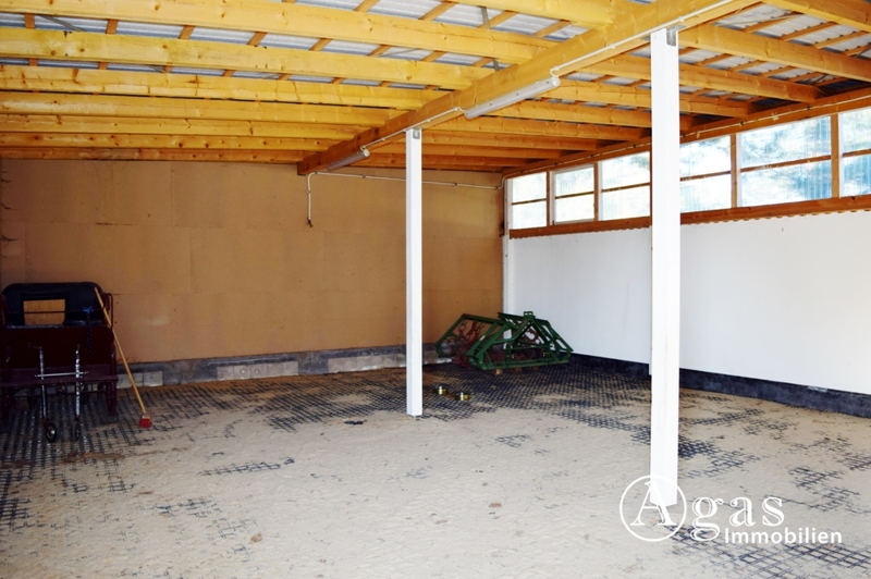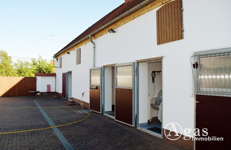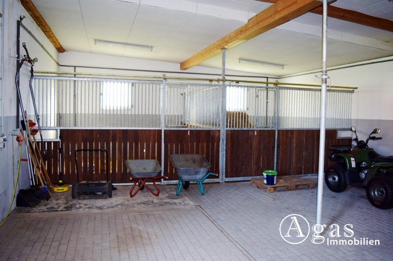 In der komplett sanierten Scheune befinden sich die Garage, die Heizungsanlage, eine Waschküche, die Sattelkammer und die Pferdeställe. Im neu errichteten Scheunenanbau finden Sie weitere Pferdeställe und zusätzliche Fläche mit verschiedensten Nutzungsmöglichkeiten.