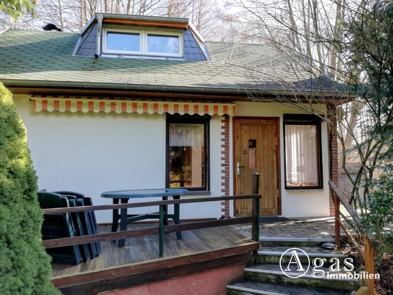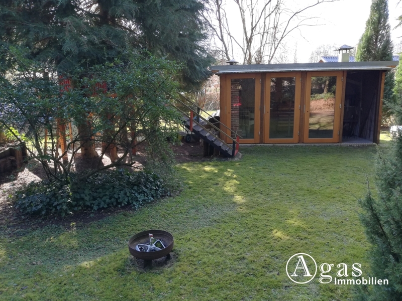 Die ca. 48 m² Wohnfläche verteilen sich auf ein gemütliches Wohn-/Esszimmer, eine kleine Küche, ein gefliestes Duschbad, ein Schlafzimmer sowie das ausgebaute Dachgeschoss. Eine etwa 15 m² große Terrasse zum Garten hin lädt zum Verweilen ein. Das Grundstück bietet Kindern ein ungewöhnliches Spielparadies: neben einem Baumhaus mit Rutsche und Kletterwand gibt es eine Schaukel sowie einen ca. 6 m² großen Kinderpool, der aus einem eigenen Brunnen gespeist wird und mit einer Sandfilteranlage ausgestattet ist.