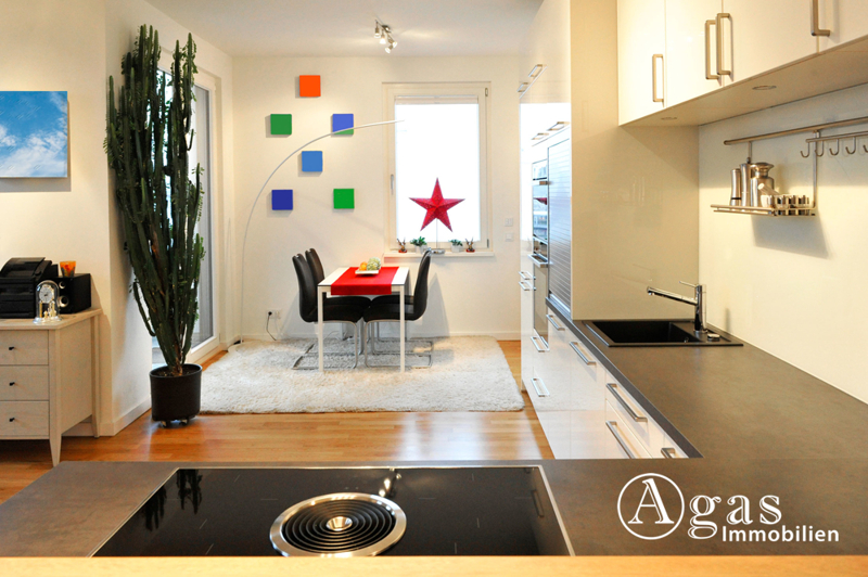 Die Einbauküche verfügt über einen gemütlichen Barbereich und ist mit hochwertigen Geräten der Firma Neff ausgestattet (Induktionsherd mit integriertem Bora Dunstabzug, separater Backofen, Dampfgarer, Spülmaschine, Kühl-/Gefrierkombination mit Eiswürfelfach).