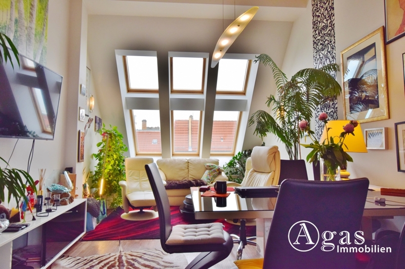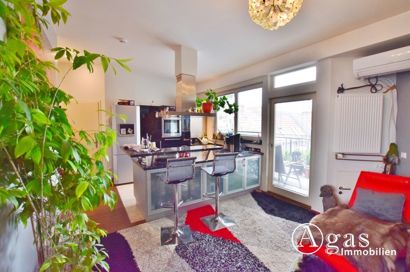 Das Zentrum der Wohnung bildet der großzügige Wohn- und Essbereich mit Einbauküche und einem Kamin. Von dort hat man direkten Zugang zur exklusiven Dachterrasse. Im Schlafzimmer wurde ein abgetrennter Homeoffice-Bereich geschaffen, der sich perfekt für das ungestörte Arbeiten von zuhause eignet. Die Wohnung verfügt zudem über einen weiteren Wohnraum mit Oberlicht, der aktuell als Ankleidezimmer genutzt wird. Das große und hell geflieste Bad verfügt über Badewanne und Dusche. Abgerundet wird die gut durchdachte Raumaufteilung durch ein Gäste-WC und einen praktischen Hauswirtschaftsraum.