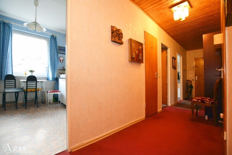 Die helle und freundliche Wohnung befindet sich im ersten OG eines im Jahr 1969 erbauten fünfgeschossigen Mehrfamilienhauses. Sie besteht aus 3,5 Zimmern und verfügt über einen Balkon. Sie betreten die Wohnung über einen geräumigen Flur, von dem aus Sie alle Zimmer erreichen können. Das helle Wohnzimmer ist mit Laminat ausgestattet und bietet den Zugang zum Balkon. Die übrigen Wohnräume sind mit Teppich ausgestattet und das Badezimmer mit Badewanne sowie das separate WC sind gefliest.