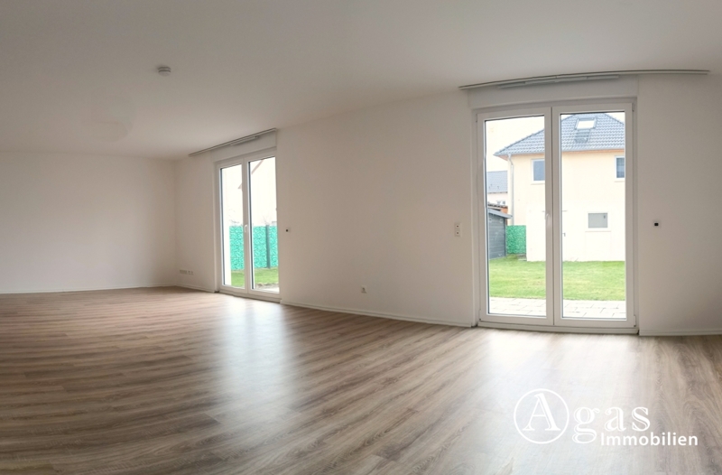 -- helles Wohnzimmer mit ca. 41 m² und Zugang zur Süd-Terrasse und zum Garten
