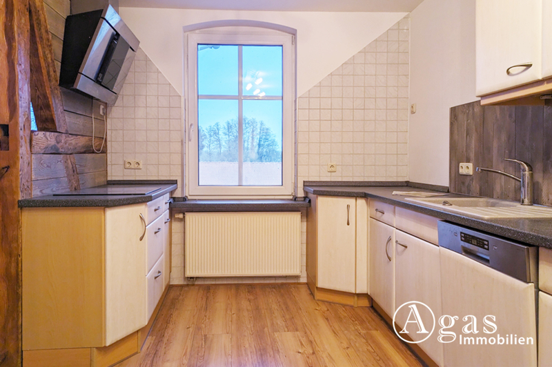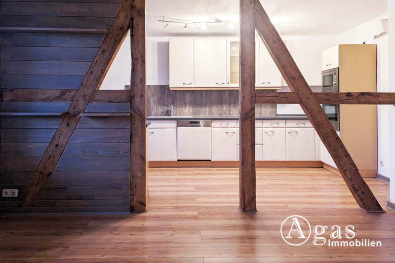 Diese charmante Immobilie besticht durch ihre besondere Ausstrahlung und Lage. Der Eingangsbereich führt Sie in einen hellen Flur, von dem aus man links das Kinderzimmer und rechts das großzügig geschnittene, hell geflieste Badezimmer erreicht. Weiter führt der Flur links in das gemütliche Wohnzimmer mit Zugang zum Balkon und dem optisch, durch die Dachbalken, besonders schön gestalteten Durchgang zur Küche. Das Wohnzimmer besticht durch sein besonderes Ambiente durch die teilweise sichtbaren Balken in der Wand. Die Einbauküche verfügt über einen Geschirrspüler, Herd, Ofen und Mikrowelle. Einen passenden Kühlschrank nach Ihrem Geschmack können Sie mitbringen. Am Ende des Flurs befindet sich das große Schlafzimmer mit Blick auf den Hof und den angrenzenden "Märchenwald", der zum Spazieren und Entspannen einlädt. Jeder Raum verfügt über Fenster, die für eine helle und freundliche Atmosphäre sorgen. Lassen Sie Ihre individuellen Wohnideen und -wünsche einfließen und schaffen Sie ein Zuhause mit besonderer Wirkung.