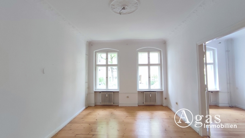 Die stilvolle Wohnung liegt im Erdgeschoss und verfügt über insgesamt 5 separat zugängliche Zimmer, die perfekt auf die Bedürfnisse von Personen abgestimmt sind, die Wert auf Raum und Individualität legen. Zwei Badezimmer bieten optimalen Komfort und machen den allmorgendlichen Start in den Tag angenehmer und entspannter. Die Küche ist mit einer Einbauküche ausgestattet. An den hohen Decken finden Sie schöne Stuckverzierungen. Die Fußböden sind größtenteils mit Holzdielen versehen, beide Badezimmer sind hell gefliest.