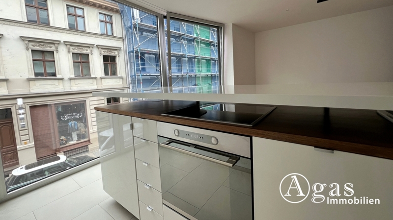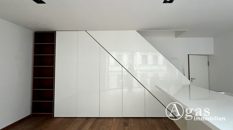 Das moderne und frisch renovierte Apartment betreten Sie im 1. Obergeschoss. Es ist teilmöbliert und mit Einbauschränken ausgestattet, die nicht nur durch ihre hochwertige Verarbeitung und edles Design überzeugen, sondern auch großzügigen Stauraum bieten und somit eine optimale Nutzung der Räumlichkeiten ermöglichen. Der freistehende Küchenblock setzt einen stilvollen Akzent.