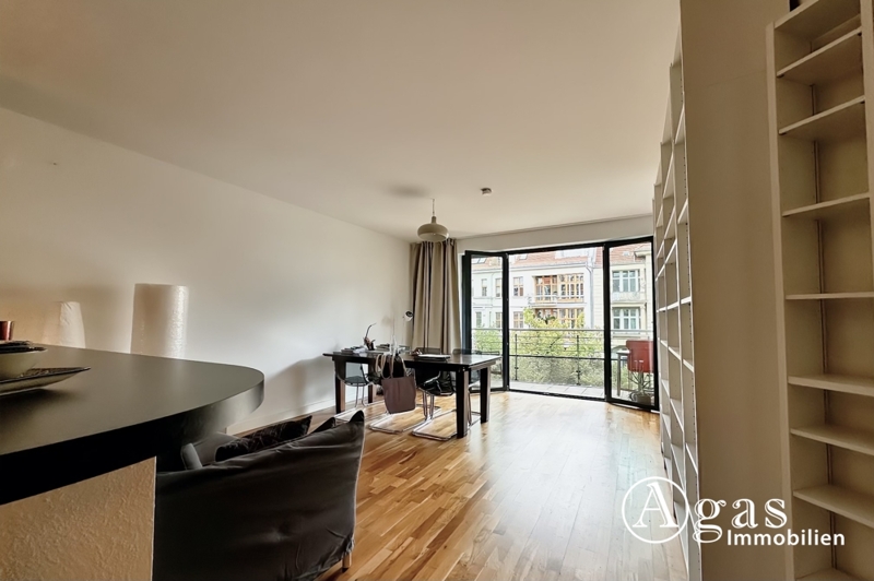 Die Highlights der Wohnung beginnen bereits im Eingangsbereich, der mit einem praktischen Einbauschrank ausgestattet ist und ausreichend Stauraum für Jacken, Schuhe und andere Utensilien bietet. Das geräumige Badezimmer ist hell gefliest und verfügt über eine Duschwanne sowie einen Waschmaschinenanschluss. Ein eingebauter Schrank sorgt hier für zusätzlichen Komfort und Stauraum. Ein wahres Highlight ist die offene, vollausgestattete Einbauküche, die ideal für Kochliebhaber ist. Mit Spüle, Herd, Backofen, Geschirrspüler und einem Kühlschrank mit Tiefkühlkombination sowie zusätzlichen Einbauten wie Geschirr- und Besenschränken und einer praktischen Theke ist diese Küche besonders funktional und einladend. Der lichtdurchflutete Wohnbereich ist mit bodentiefen Fenstern ausgestattet, die den Raum mit natürlichem Licht durchfluten und eine freundliche Atmosphäre schaffen. Von hier aus gelangen Sie auf einen charmanten Balkon, der einen traumhaften Blick nach Osten auf die Schlüterstraße bietet. Das gemütliche Schlafzimmer, erreichbar vom Wohnbereich, ist hell und freundlich und bietet ausreichend Platz für ein großes Bett und weitere Möbel. Die gesamte Wohnung ist mit einem eleganten Parkettboden ausgestattet, der für ein warmes und stilvolles Ambiente sorgt. Ein zusätzlicher Kellerraum bietet weiteren Stauraum für Ihre Habseligkeiten.