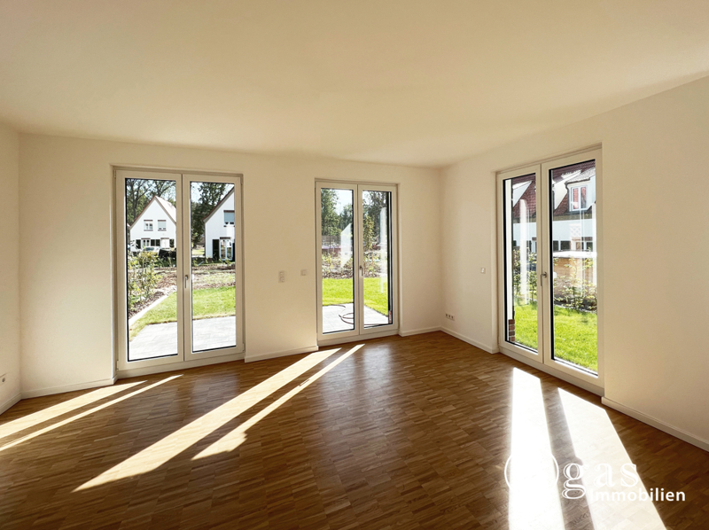 Dieses helle und ruhig gelegene Endreihenhaus mit KfW 55-Standard wurde im Juli 2023 fertiggestellt und wird bezugsfrei zur Vermietung angeboten.