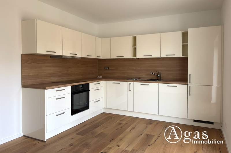Die hochwertige Einbauküche fügt sich harmonisch in den Raum ein. Das geräumige Schlafzimmer bietet Ruhe und Rückzug, das tagesbelichtete Badezimmer präsentiert sich hell gefliest; eine Duschkabine wird noch eingebaut.