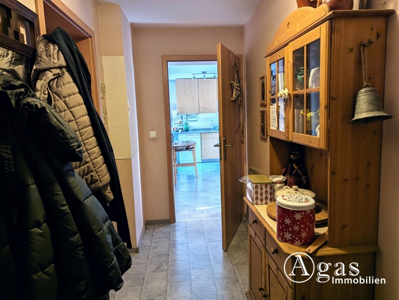 Sie betreten den Bungalow trockenen Fußes, durch die Garage und gelangen in einen Flur, der Ihnen auch Platz für eine Garderobe bietet. Von hier aus befindet sich links haltend das Schlafzimmer mit großem Fenster und einem wunderschönen Blick in den großzügigen Garten. Im Flur links gehend befindet sich das große, hell geflieste Duschbad mit WC und Tageslicht. Die einladende, gut ausgestattete Küche am Ende des Flures hat alles was man braucht.