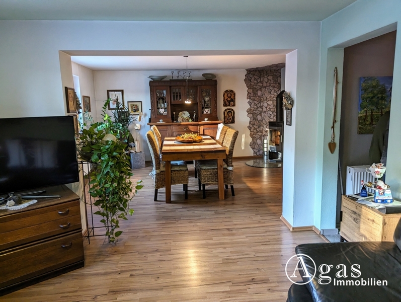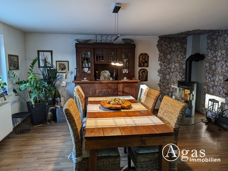 Der Höhepunkt ist das großzügige und helle Wohnzimmer mit einem ebenso großen Essbereich. Ausgestattet mit einem Laminatboden sowie einem schönen Kaminofen finden Sie hier einen Wohlfühlort mit ausreichend Platz und Helligkeit, der zum Verweilen einlädt.