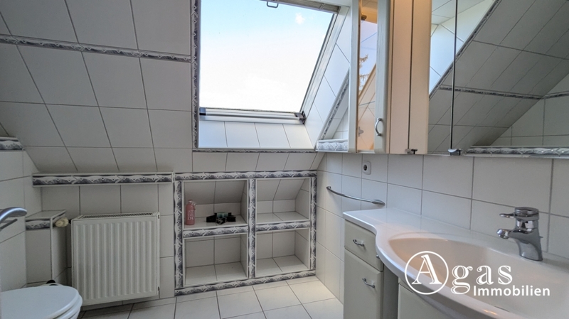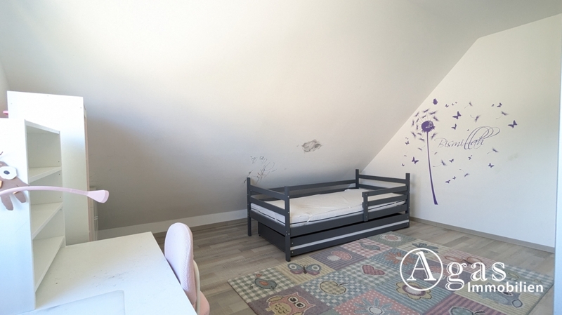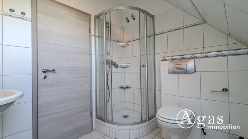 Das Obergeschoss teilt sich in einen Flur, drei helle, geräumige Schlafzimmern sowie ein Bad mit Tageslicht, Dusche und WC auf.