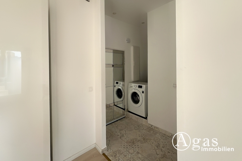 Das Apartment überzeugt auf ca. 32 m² durch eine hochwertige Ausstattung und viele Details. Die offene Einbauküche ist optimal in den Wohnbereich integriert und verfügt über moderne Elektrogeräte, die selbst höchsten Ansprüchen gerecht werden. Der hell geflieste Boden sorgt zusammen mit den eleganten goldenen Details im Badezimmer für eine edle und ästhetische Atmosphäre. Die komfortable Dusche bietet zusätzlichen Luxus. Der Wohn- und Schlafbereich wirkt durch die Raumaufteilung und die großen Fenster besonders einladend. Zusätzlich stehen ein privater Kellerraum für mehr Staufläche zur Verfügung. Zur Wohnung gehört ein Außenstellplatz, der sich auf der Gemeinschaftsfläche befindet und genutzt werden kann.