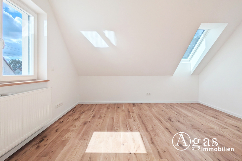 Im oberen Geschoss gelangen Sie über die massive Treppe in einen Flur, der links in das erste Schlafzimmer führt. Geradeaus finden Sie das stilvolle Badezimmer, während der Flur weiter nach rechts zu drei weiteren, einladenden Schlafzimmern führt. Ein besonderes optisches Highlight sind die sichtbaren, liebevoll aufgearbeiteten Balken, die diesem Wohnbereich eine individuelle Note verleihen.