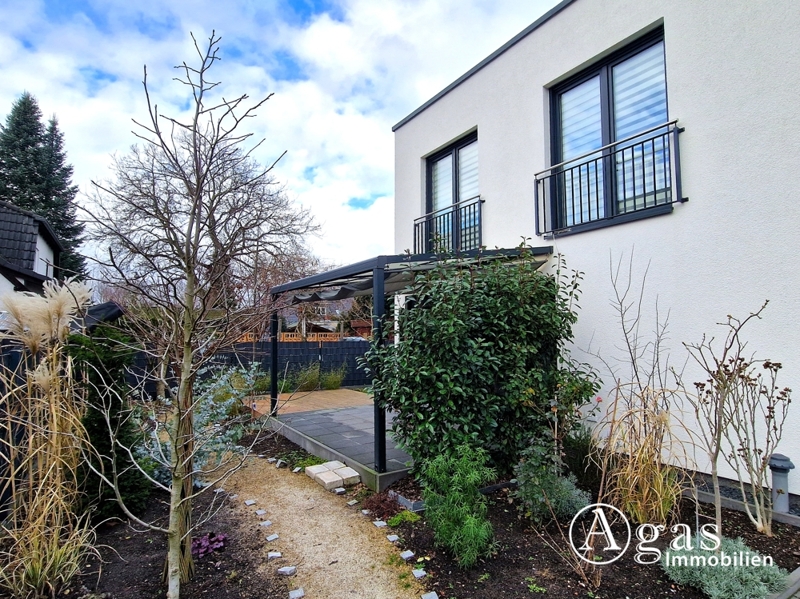 Diese moderne Stadtvilla im Berliner Ortsteil Mahlsdorf wurde im Jahr 2022 fertig gestellt. Sie steht auf einem ca. 283 m² großen Grundstück mit PKW-Stellplatz und Gartenfläche mit Terrasse. Auf ca. 101 m² Wohnfläche gibt es 4 Zimmer, verteilt auf 2 Etagen. Energiesparen wird in diesem Einfamilienhaus groß geschrieben und jedes der bodentiefen Fenster verfügt über elektrische Jalousien. Die Terrasse hat einen Sonnen- und Windschutz und in dem schön angelegten Garten befindet sich neben einem Gartenhäuschen für Gartengeräte und Ähnlichem auch eine Unterstellmöglichkeit für Fahrräder.