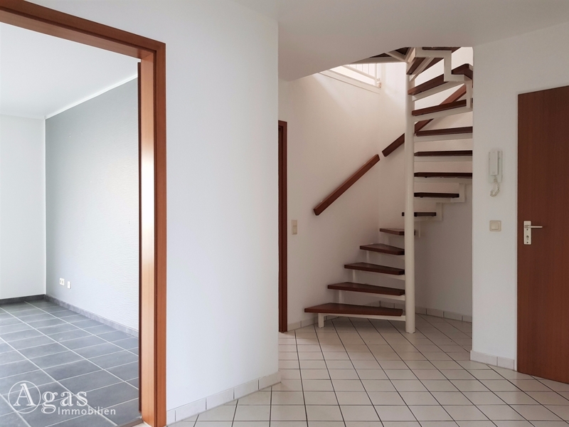 Die hier angebotene 4-Zimmer-Maisonettewohnung befindet sich im 2. und 3. Obergeschoss (=Dachgeschoss) einer ca. 1994 errichteten Wohnanlage. Die hell und freundlich wirkende Wohnung betritt man über das 2. Obergeschoss. Von der Diele gelangt man in 3 Wohnräume sowie das Wannenbad und die Küche. Vom Wohnzimmer ist der nach Westen ausgerichtete Balkon erreichbar. Die Fußböden in Flur, Küche und Bad sind mit Fliesen versehen, im Wohnzimmer ist Parkett verlegt. Über die Treppe in der Diele gelangt man in das Dachgeschoss. Hier sind ein großes Zimmer, ein Duschbad sowie eine kleine Arbeitsecke vorhanden. Die Beheizung wird über eine Zentralheizung gewährleistet, die mit Fernwärme versorgt wird. Zur Wohnung gehören ein Außenstellplatz, der zusätzlich angemietet werden kann sowie ein ca. 8 m² großes Kellerabteil. Darüber hinaus gibt es einen gemeinschaftlich nutzbaren Fahrradkeller und einen Trockenraum.