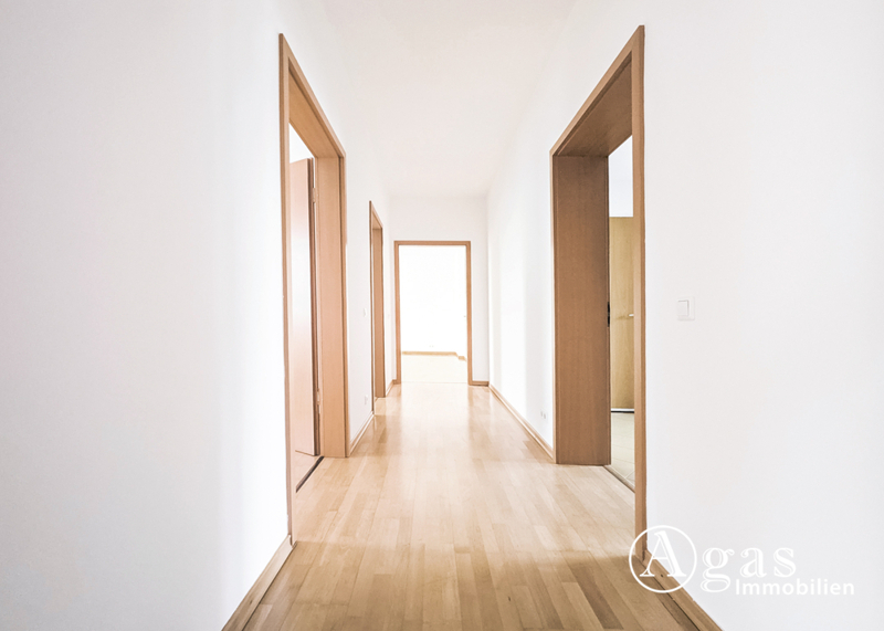 Der Eingangsbereich dieser Wohnung eröffnet sich in eine L-förmig geschnittene Küche mit Platz für einen Essbereich. Hier gelangen Sie direkt auf den Balkon mit einladendem Blick in den gepflegten und lichtdurchfluteten Innenhof. Ein zentraler Flur dient als verbindendes Element zu den weiteren Räumlichkeiten der Wohnung...