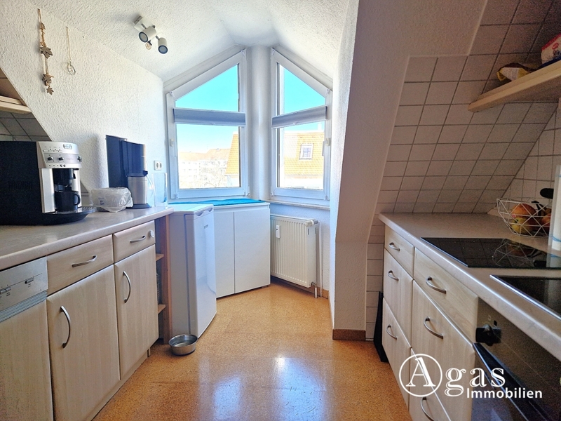Diese großzügig geschnittene 3-Zimmer-Maisonette-Wohnung mit ca. 91 m² Wohnfläche erstreckt sich über den vierten und fünften Stock des 1996 erbauten Hauses. Die Wohnung verfügt über einen Südbalkon zur Hofseite, zwei Parkhausstellplätze und einen Kellerraum. Geheizt wird das Haus mittels einer Gas-Zentralheizung. Eine praktische Einbauküche ist vorhanden.