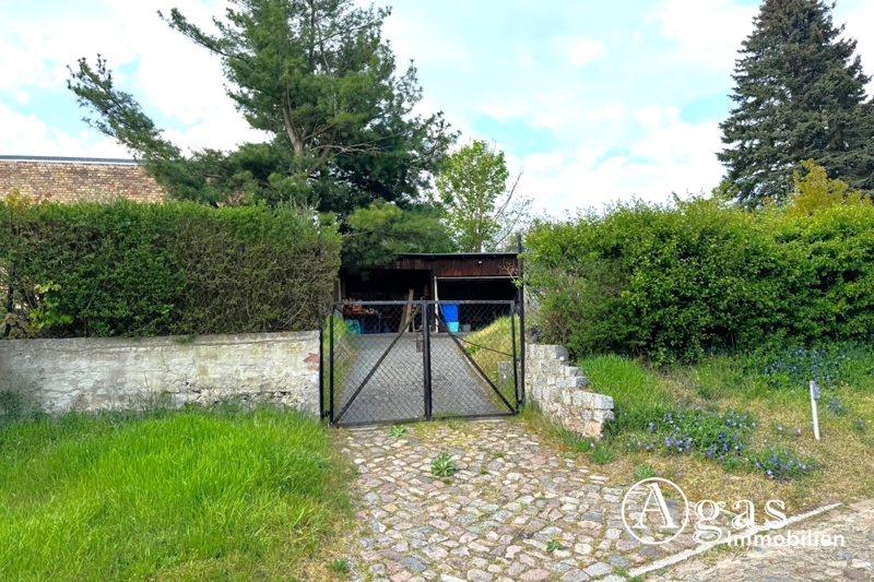 Zum Grundstück gehören zwei separate Zugänge, ein praktischer Schuppen für Fahrräder oder Gartengeräte sowie eine eigene Zufahrt mit Carport für zwei Fahrzeuge.