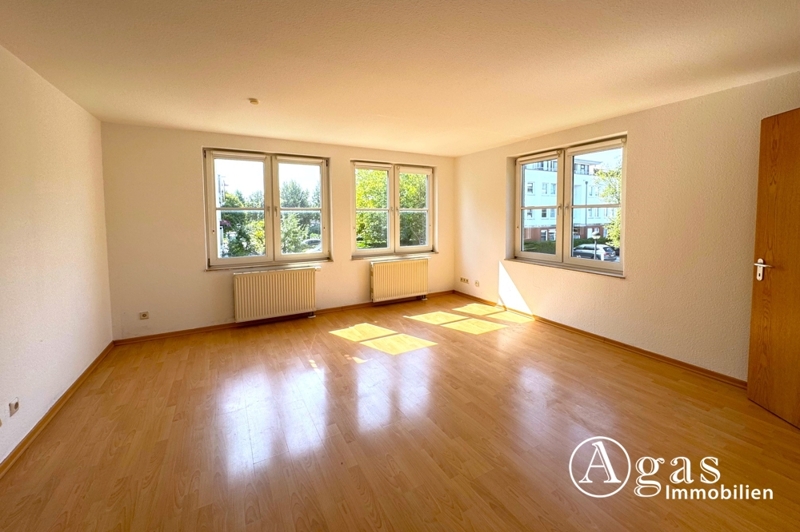 Folgt man dem Flur nach links, öffnet sich das lichtdurchflutete Wohnzimmer. Dieser großzügig geschnittene Raum bietet viel Platz für individuelle Einrichtungsideen und lädt durch seine Helligkeit sofort zum Wohlfühlen ein. Vom Wohnzimmer aus gelangt man in eine praktische kleine Abstellkammer, die zusätzlichen Stauraum für Haushaltsutensilien bietet.