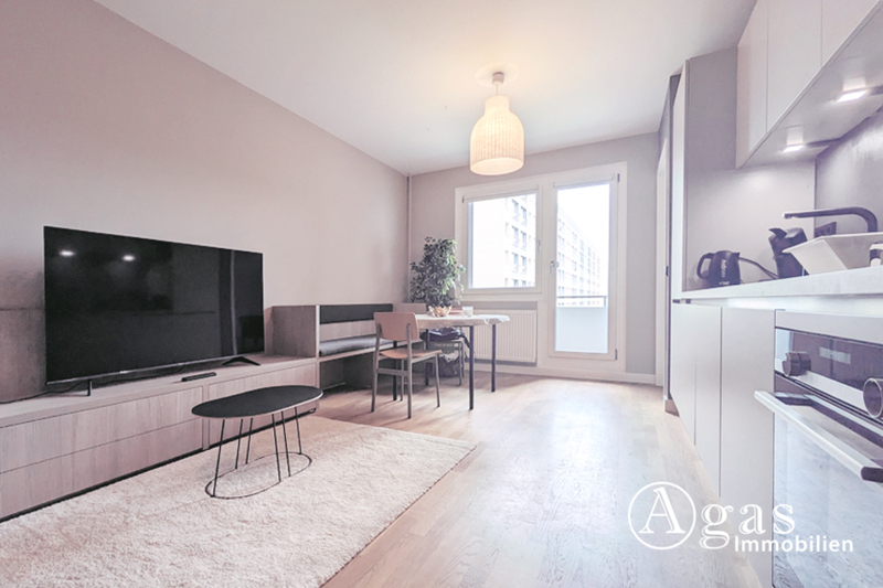 Der Eingangsbereich führt Sie zu einem stilvollen Wohn- und Essbereich inklusive TV und einer modernen Einbauküche, ausgestattet mit Geschirrspüler, Waschmaschine, Kaffeemaschine und ausreichend Stauraum. Vom Balkon aus genießen Sie einen weiten Blick und haben ausreichend Platz für einen Tisch und Stühle. Der separate Schlafbereich mit Fenster bietet Ruhe und Privatsphäre. Der geschmackvoll gestaltete Wohnraum lädt zum Wohlfühlen ein - er bietet alles, was man für ein komfortables Wohnen benötigt. Diese charmante Immobilie verfügt über eine Fernwärme-Zentralheizung für optimalen Komfort.