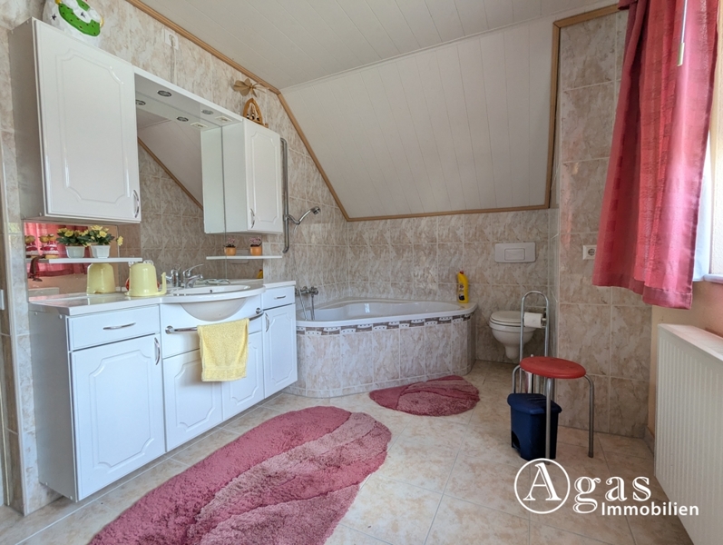 Der Treppe nach oben folgend gelangen Sie in das Obergeschoss, das mit zwei großzügigen, hellen Räumen aufwartet. Das Wannenbad ist mit Tageslicht, WC sowie Waschbecken ausgestattet und lädt zum Entspannen und Wohlfühlen ein. Hier können Sie nach einem langen Tag zur Ruhe kommen und sich eine Auszeit gönnen.