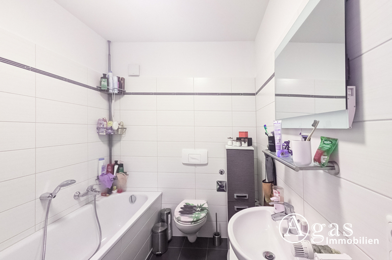 Diese Wohnung beeindruckt mit einem klar strukturierten Eingangsbereich, der ausreichend Platz für eine Garderobe bietet. Die Küche ist zentral gelegen und bietet zur rechten direkten Zugang zum Schlafzimmer sowie in das Badezimmer mit einer komfortablen Badewanne.