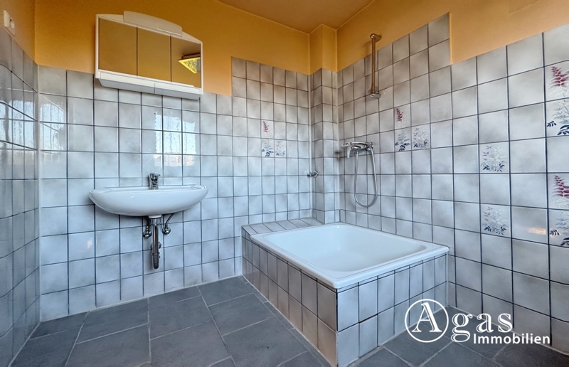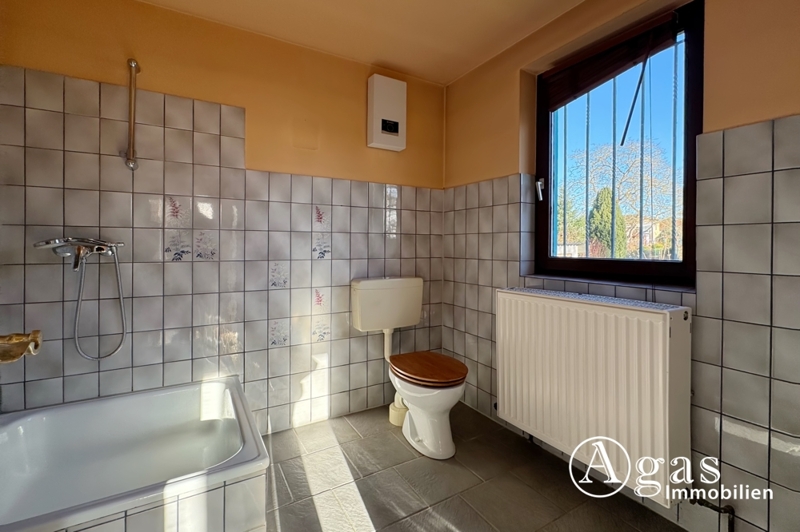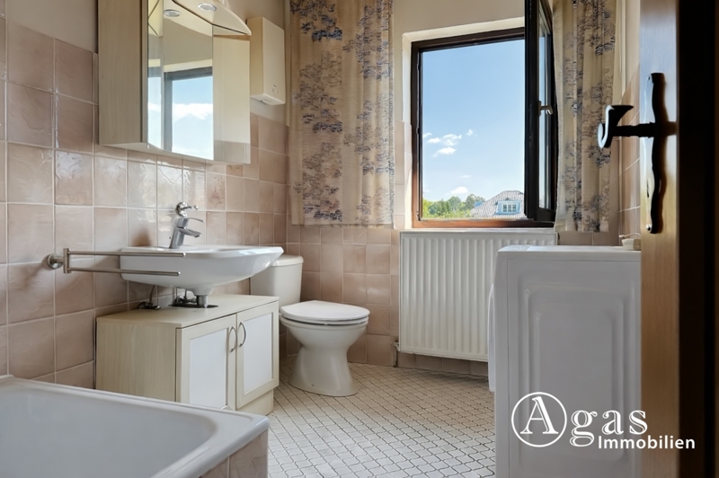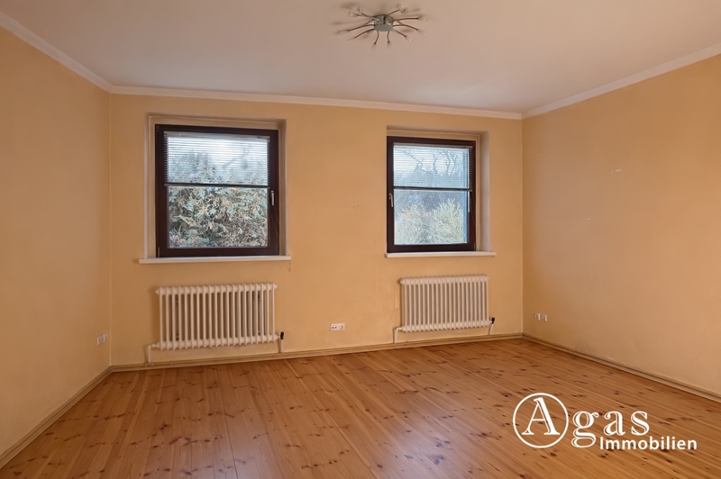 Die Obergeschosswohnung umfasst ebenfalls drei Zimmer und zwei Bäder. Sie ist sanierungsbedürftig und bietet damit hervorragendes Potenzial für individuelle Gestaltung, Modernisierung und nachhaltige Wertsteigerung.