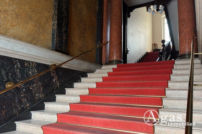 • Historisch geprägtes Treppenhaus mit klassizistischen Gestaltungsmerkmalen und hochwertigem Kunsthandwerk aus der Bauzeit