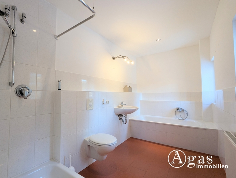 Ein großzügiges Tageslichtbad, ausgestattet mit Badewanne, Dusche, WC und Handwaschbecken vervollständigt, das Obergeschoss.