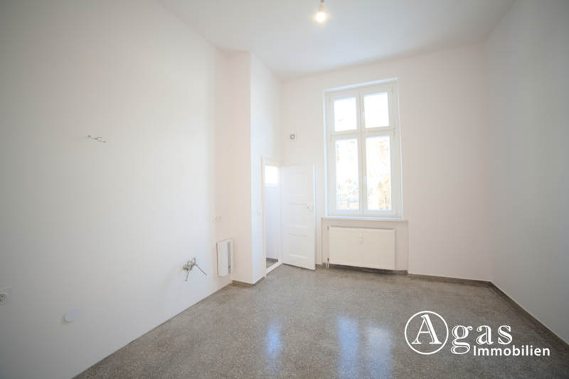 Vom Flur aus gelangt man geradeaus links in das erste Schlafzimmer, das über zwei separate Zugänge verfügt und dadurch flexibel nutzbar ist. Ebenfalls vom Flur aus erreichbar ist das modern ausgestattete Badezimmer, welches Frisch saniert wurde. Das Badezimmer verfügt sowohl über eine Badewanne als auch über eine verglaste Dusche und bietet genug Platz für eine Waschmaschine. Daran anschließend befindet sich die großzügige Küche, die ausreichend Platz zum Kochen und Verweilen bietet und zusätzlich mit einer praktischen Abstellkammer ausgestattet ist. Ein weiterer Abstellraum ist dem Schlafzimmer zugeordnet und sorgt für zusätzlichen Stauraum.