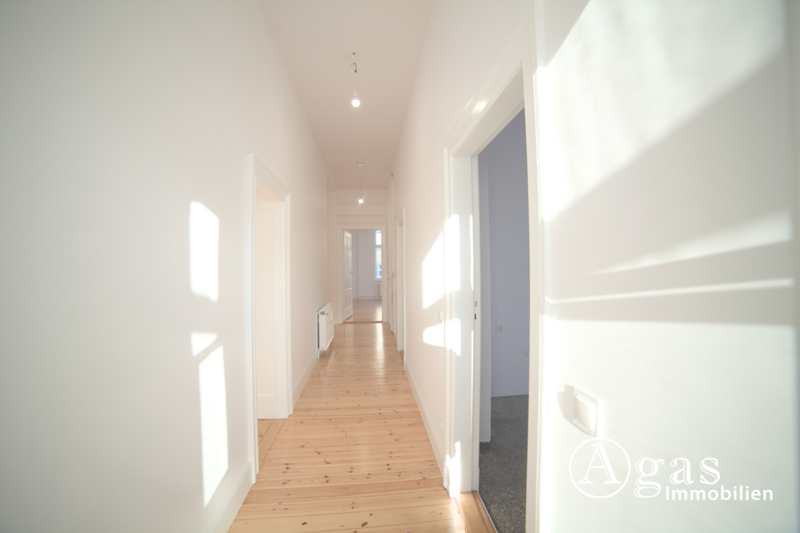 Die Wohnung befindet sich in einem freistehenden, äußerst gepflegten Altbau und besticht durch einen außergewöhnlich großzügig geschnittenen Flur. Dieser öffnet sich in mehrere Richtungen und vermittelt einen harmonischen Eindruck der weitläufigen Raumstruktur.