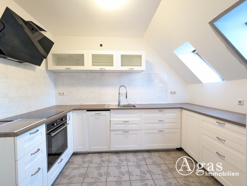 Am Ende des Flures befindet sich das großzügige Wohnzimmer, das ausreichend Platz für eine gemütliche Wohnlandschaft und eine Essecke bietet. Von hier aus gelangen Sie in die funktional und technisch gut ausgestattete Küche.