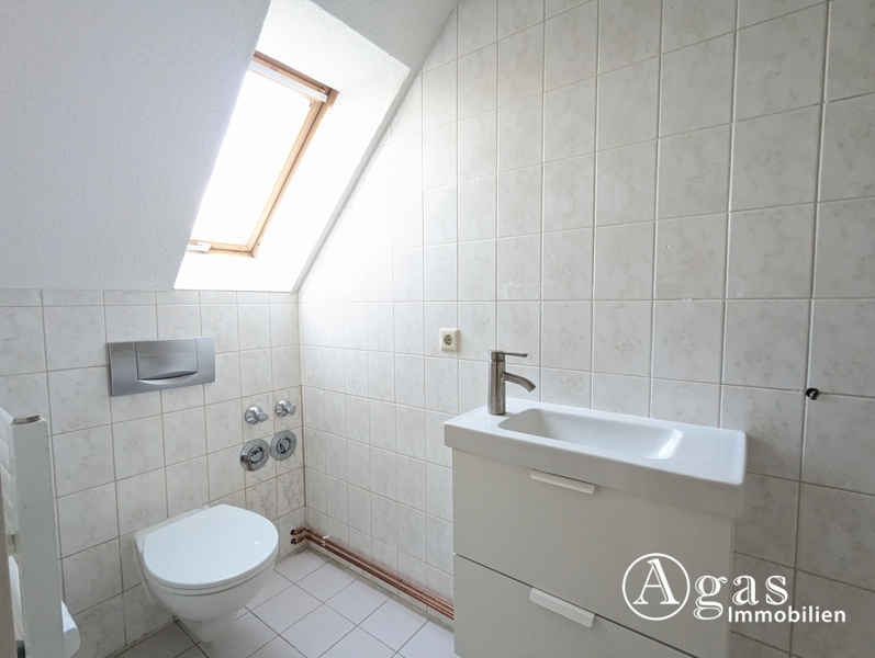Zur linken Seite befindet sich ein vielseitig nutzbares, lichtdurchflutetes Zimmer, das über einen direkten Zugang zu einem Tageslichtbad mit WC, Handwaschbecken und Dusche verfügt. Entlang des Flures eröffnet sich ein weiteres großzügiges und helles Zimmer, das vielfältige Nutzungsmöglichkeiten bietet.