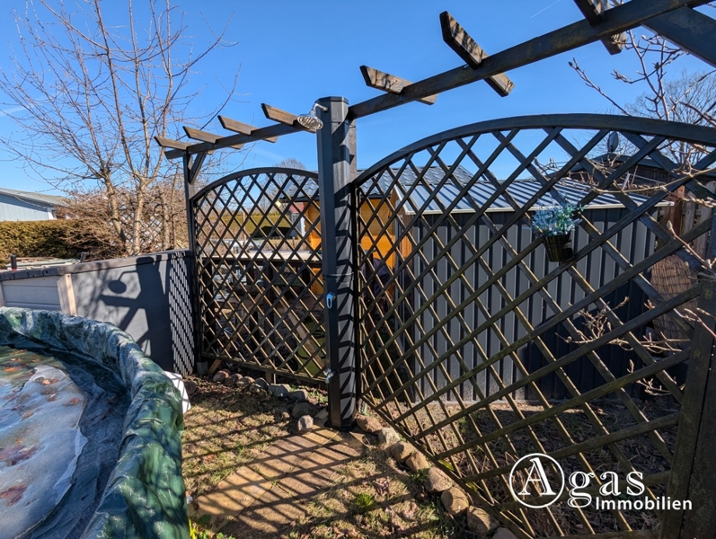 Bei der Übernahme des Pachtgartens erwerben Sie das Nutzungsrecht am Bungalow sowie dessen Ausstattung, inklusive Einbauküche. Ebenso im Preis inkludiert sind die Gartenmöbel und die vorhandenen Pool- und Gartengeräte. Bei dem Grundstück handelt es sich um Pachtland, für das ein neuer Pachtvertrag mit dem privaten Verpächter abgeschlossen wird.