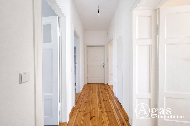 Die Wohnung präsentiert sich in einem sehr gepflegten Zustand und verbindet den architektonischen Charakter der späten 1920er-Jahre mit zeitgemäßem Wohnkomfort. Hohe Decken, großzügige Fensterflächen und die straßenseitige Ausrichtung nach vorne sorgen für eine offene, helle Atmosphäre. Die klassischen Dielenböden wurden fachgerecht abgeschliffen und verleihen den Räumen Wärme und Authentizität.