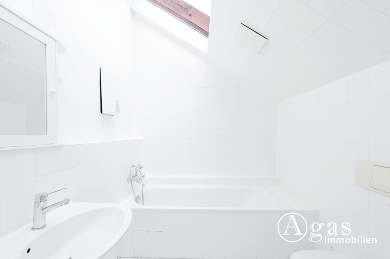 Betreten Sie diese offene, helle Dachgeschosswohnung, führt ein kleiner Flur Sie zur rechten in das Gäste-WC mit Dusche, darauf folgt eine Kammer, welche als z.B. begehbarer Kleiderschrank genutzt werden kann. Zur linken befindet sich die hell geflieste Küche, welche bereits mit Einbaumöbeln ausgestattet ist.