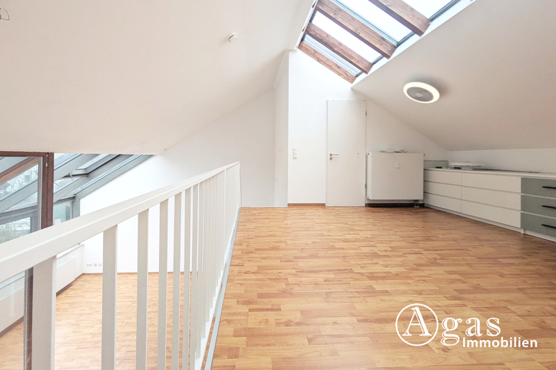 Rechts im Wohnzimmer finden Sie die Treppe in das offene Dachgeschoss mit zusätzlichem Wannenbad und ebenfalls einer großen Fensterfläche für viel Licht.