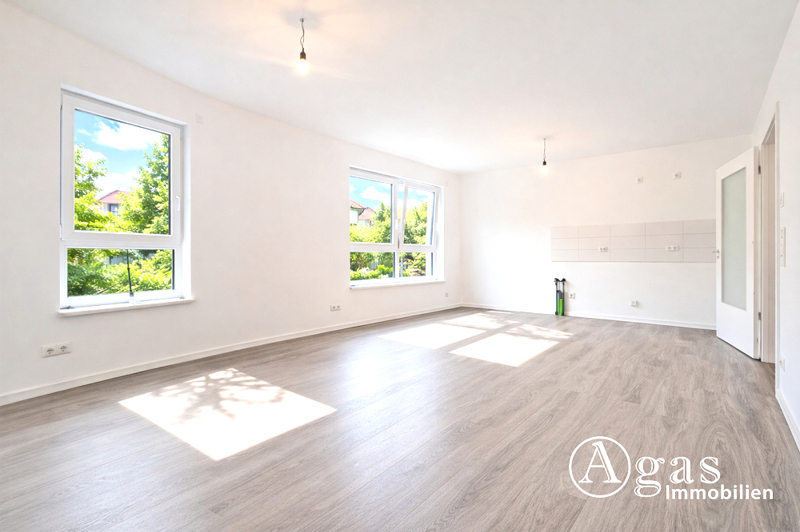Betreten Sie das Objekt, empfängt Sie ein Flur mit Platz für eine Garderobe. Gleich zur linken finden Sie das großzügige Duschbad. Geradezu befindet sich die helle, offene Wohnküche mit ca. 26 m². Zwei Fenster sorgen für eine angenehme Tageslicht-Beleuchtung.