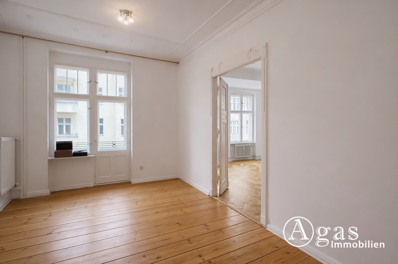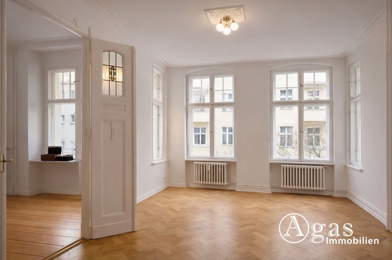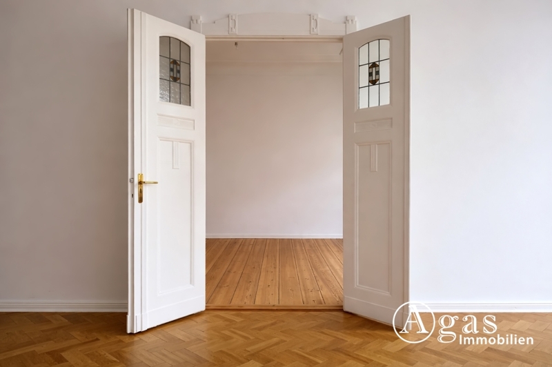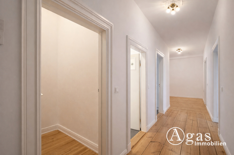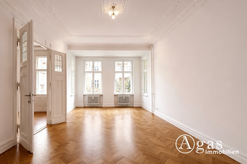 Hohe Decken, kunstvoller Stuck und originale Dielen sowie Stabparkettböden schaffen eine elegante, zeitlose Wohnatmosphäre. Große Fenster sorgen für lichtdurchflutete Räume und unterstreichen den offenen, repräsentativen Charakter der Wohnung.