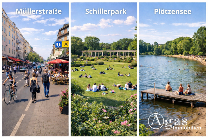 Trotz urbaner Lage kommt auch die Erholung nicht zu kurz. Der nahegelegene Volkspark Rehberge bietet weitläufige Grünflächen, Spazierwege, Sportmöglichkeiten und sogar ein Freibad. Der Schillerpark – als UNESCO-Welterbe Teil der Berliner Moderne – lädt ebenfalls zum Verweilen ein.