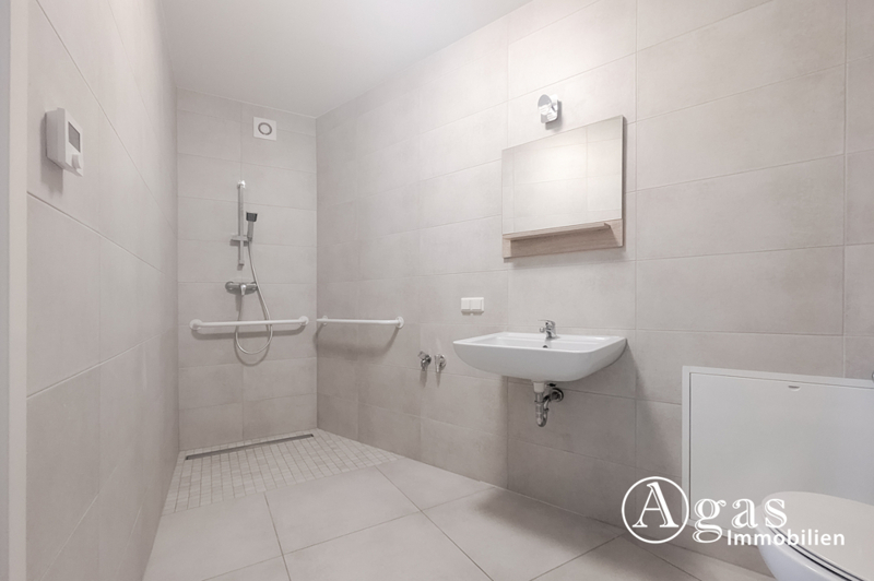 Auf einer Wohnfläche von ca. 44,77 m² (Gemeinschaftsbereich ist anteilig eingerechnet) erwartet Sie ein Raumkonzept, das sorglosen Wohnkomfort in einem Zimmer bietet. Der offene Grundriss und die großzügigen Fenster sorgen für eine helle und freundliche Atmosphäre. Das moderne Badezimmer verfügt über eine ebenerdige Dusche, rutschfeste Bodenbeläge sowie bereits installierte Haltegriffe, die Ihre Sicherheit gewährleisten.