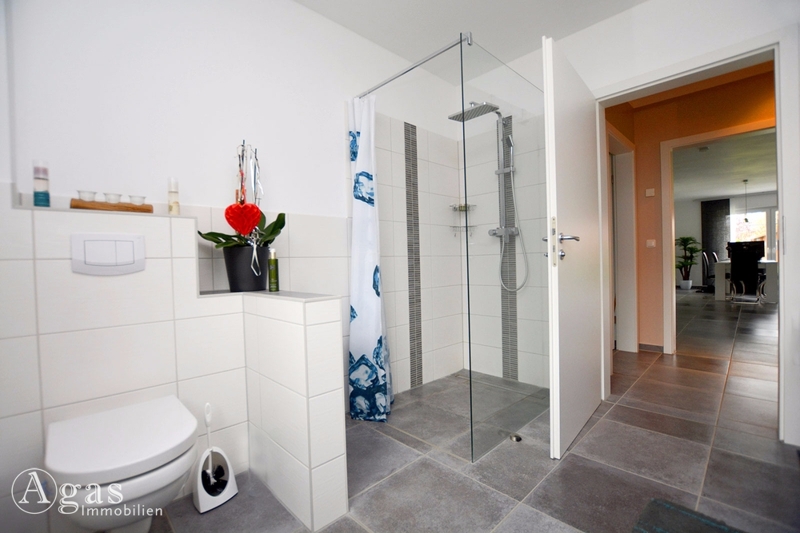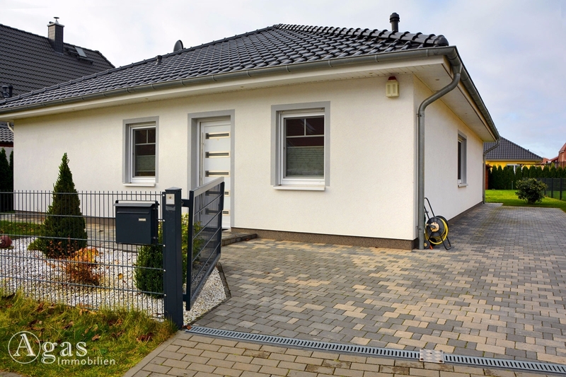 Sie betreten den hellen und freundlichen Bungalow (Baujahr 2011) durch eine Diele, von der aus Sie sämtliche Zimmer erreichen können. Sowohl vom Wohnbereich als auch von der offenen Küche aus können Sie die überdachte Terrasse erreichen, auf der Sie nicht nur bei Sonnenschein entspannen können. Die helle Einbauküche und der in die Kochinsel integrierte Bistro-Frühstücksplatz mit zwei Barhockern gib der Küche eine wohnliche Atmosphäre. Das geräumige, lichtdurchflutete Wohnzimmer bietet zudem Platz für einen Essbereich für ca. 8 Personen. Das Badezimmer, mit großer ebenerdiger Dusche, ist halbhoch hell gefliest.
