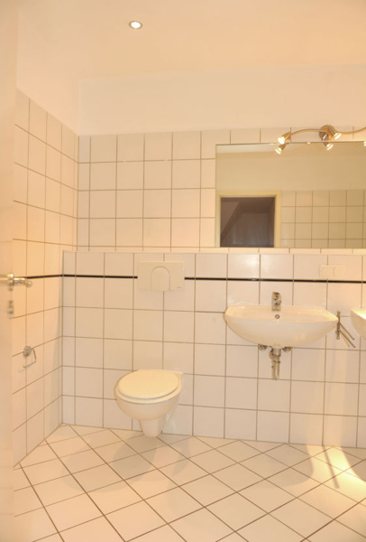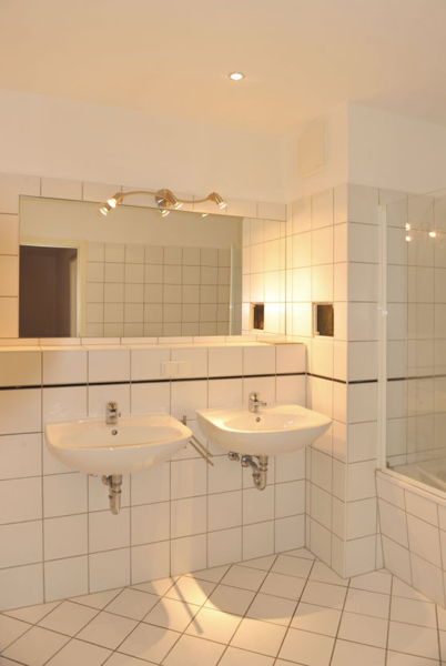 - Bad gefliest mit WC, Badewanne, Doppelwaschtisch, Waschmaschinenanschluss