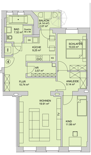 | Kaltmiete | 790 € | Nebenkosten | 285 € |