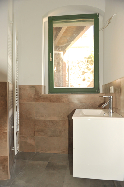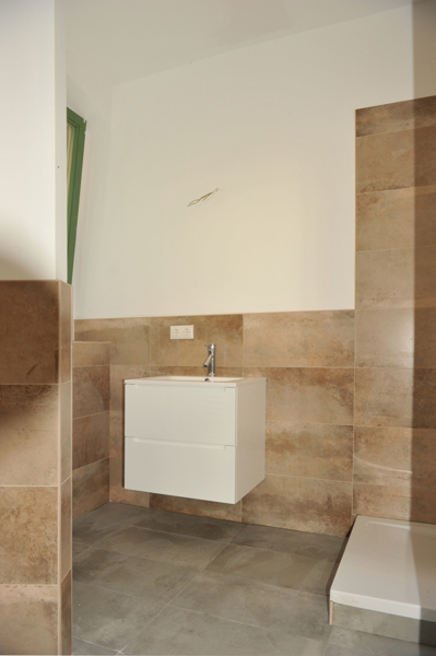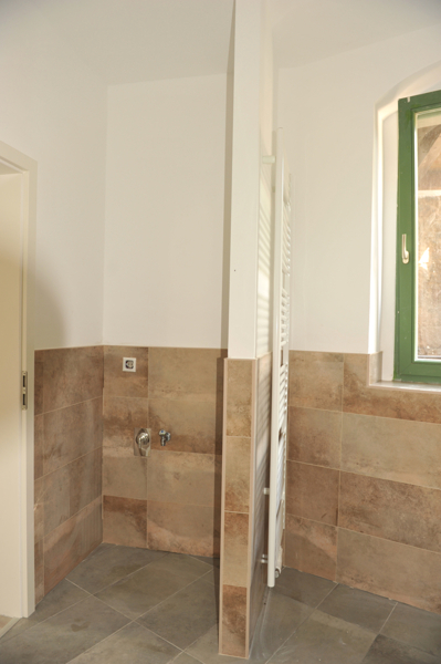 - Bad mit WC, großer Dusche, Waschtisch und Fenster